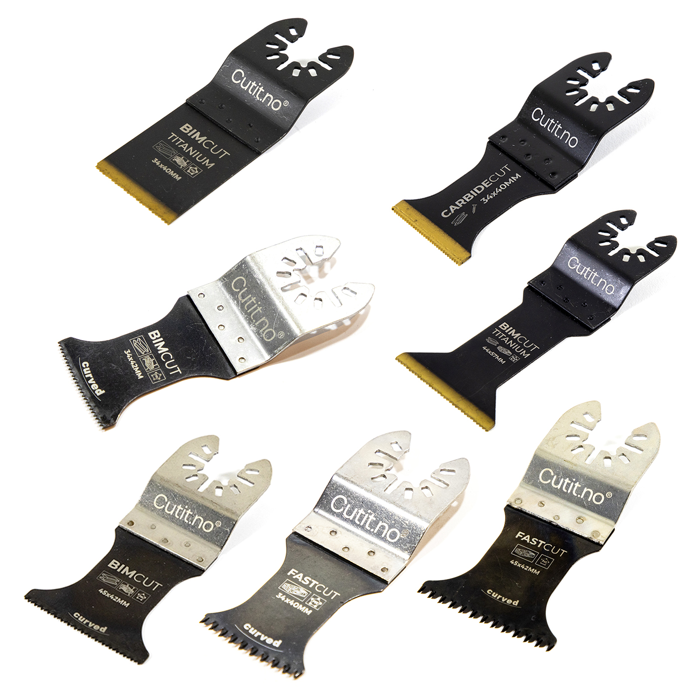 Her får du japansk, curved blad og bi-metall + titanium blad.