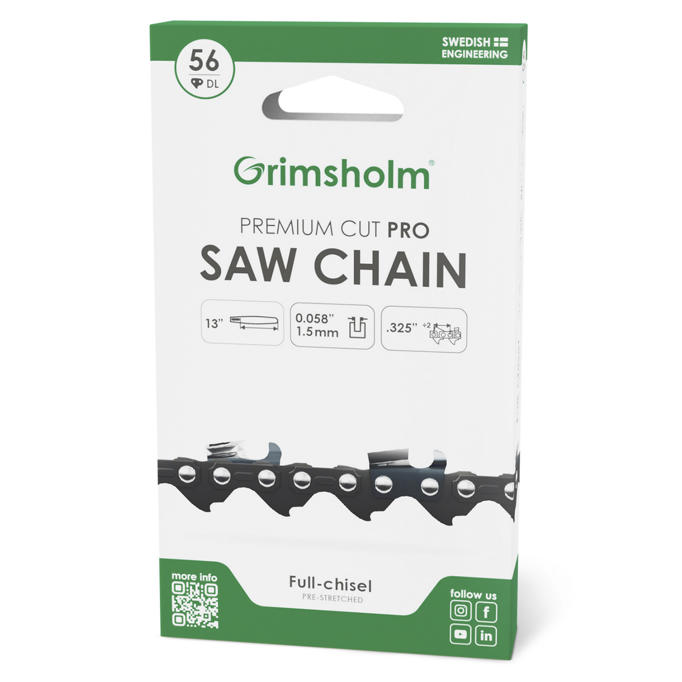 Høykvalitets sagkjede fra Grimsholm Premium Cut-serie laget av tysk stål.